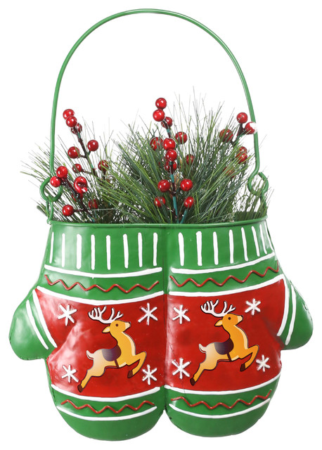 Alpine Christmas Hanging Metal Mittens Planter With Led Light 34 Tall