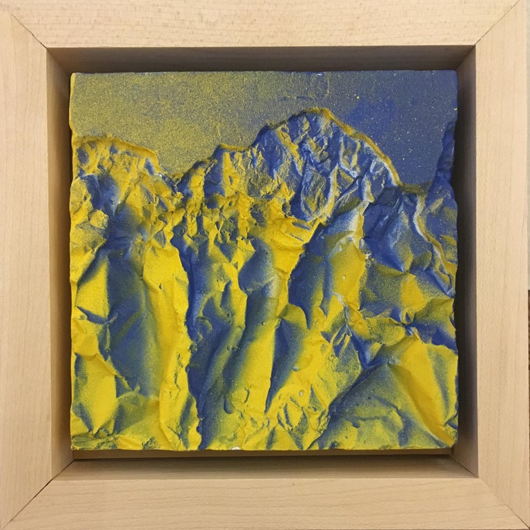 Box Mountains Yellow And Blue 2019 Landscape Hydrocal And Spray Paint Framed